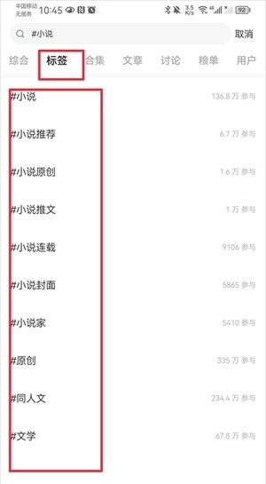2、然后在标签页面中选择你感兴趣的小说标签,例如文学;