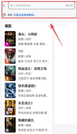 1、在首页搜索栏直接输入影片全名,例如惊天魔盗团3,然后点击搜索获取资源列表。
