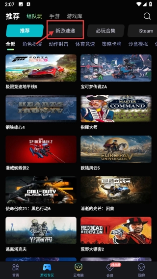 在游戏分类页面,点击“新游速递”分类标签,即可进入新游推荐列表页面。