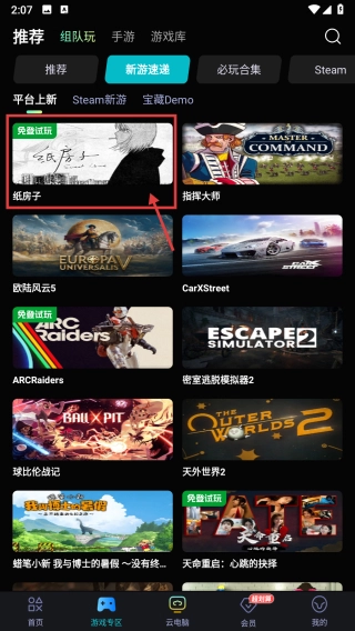 在新游戏推荐列表页面,点击“纸房子”这款游戏,即可进入该游戏的详情页面。
