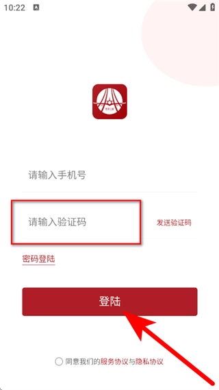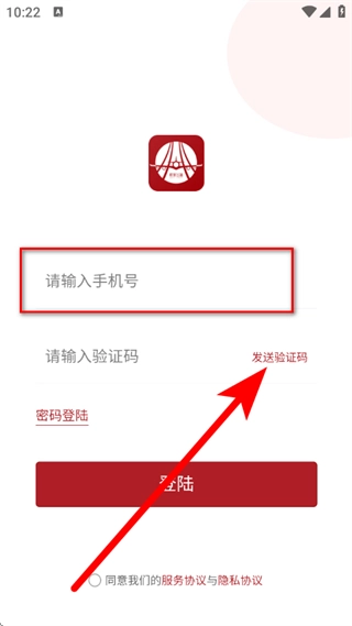 在验证码登录页面,输入手机号,点击发送验证码。