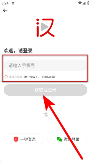 输入手机号,勾选阅读并同意后,点击获取验证码。