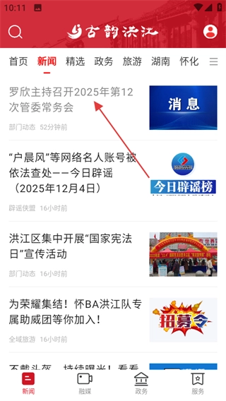 在古韵洪江的首页,点击页面顶部的“新闻”选项,即可进入新闻列表页面。