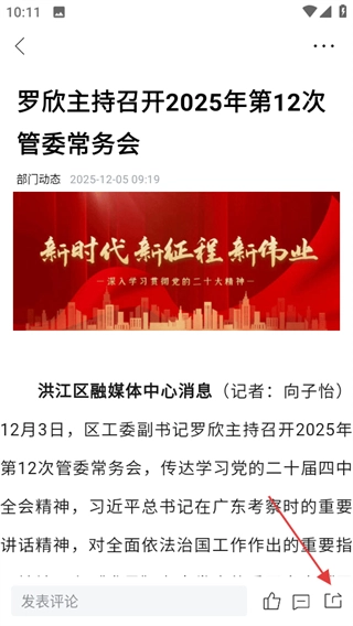 在新闻详情页面,点击底部的分享按钮后,会弹出分享选项菜单。