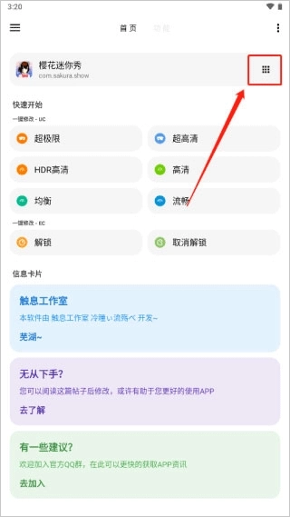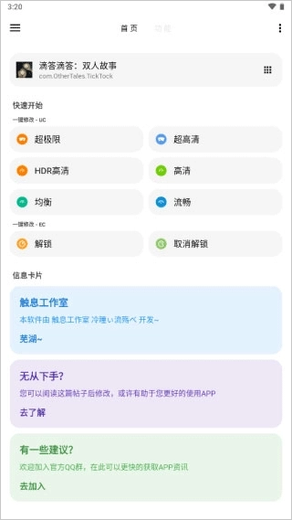 2、用户可以通过快速启动功能一键修改画质码,也可以在信息卡中查看关于游戏和装备的状态信息。