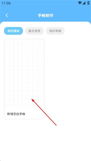 在手帐制作页面,点击新增空白手帐选项,即可进入空白手帐编辑界面。