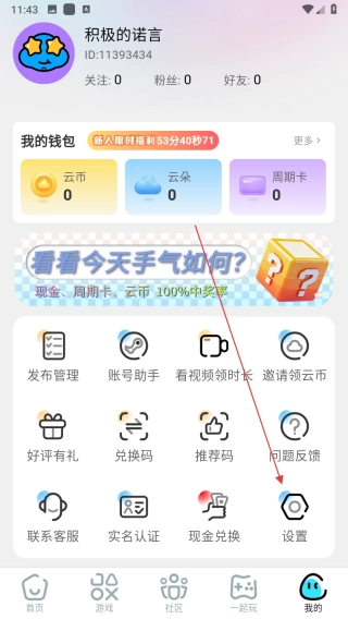 打开领沃云电脑应用后,点击界面底部导航栏最右边的“我的”选项,就能进入个人中心页面了。