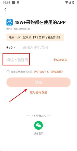 在验证码输入框里填入收到的验证码,点击登录按钮就能完成账号登录流程。