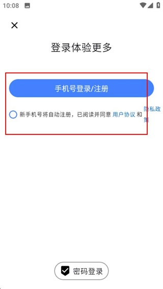 在登录页面,先勾选相关协议,再点击手机号登录按钮,即可完成账号登录操作。
