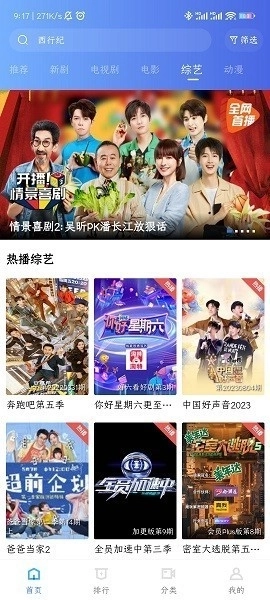 2、进入软件首页,上方导航是推荐、新剧、电视剧、电影、综艺、动漫、以及搜索栏目;