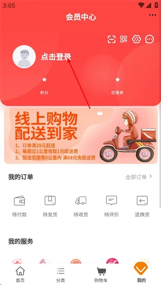 在会员中心页面点击点击登录区域,进入登录页面。