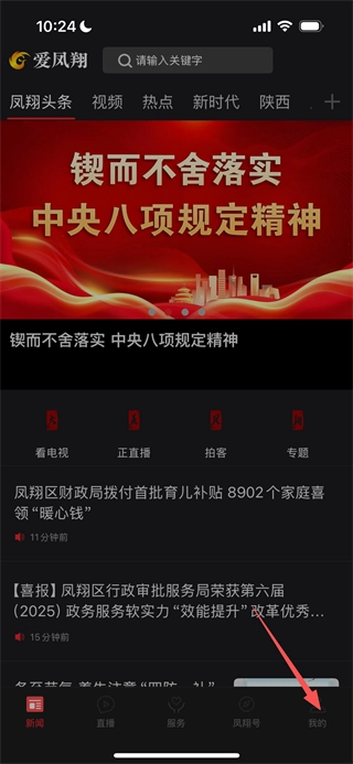 在爱凤翔首页点击我的选项,进入个人中心页面。