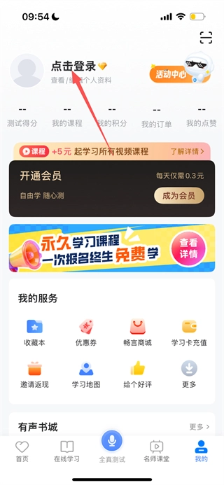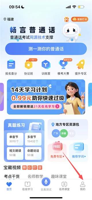 在畅言普通话首页,点击底部的“我的”选项,即可进入个人页面。