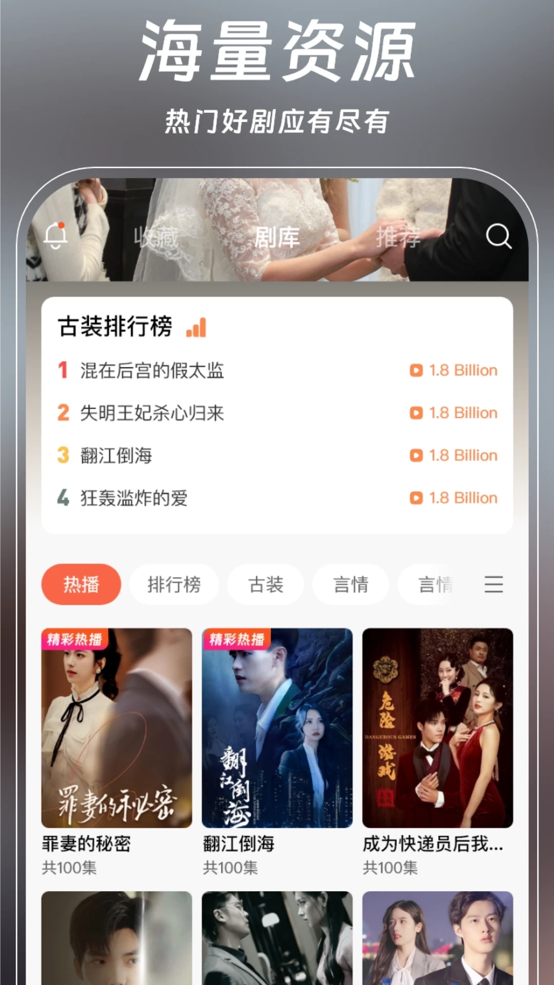 1、主打短剧轨迹,集甜宠、穿越、古装、尔迷、悬疑、职场等热门话题,既有甜妻归来的熵生女儿等爆款独家集锦。
