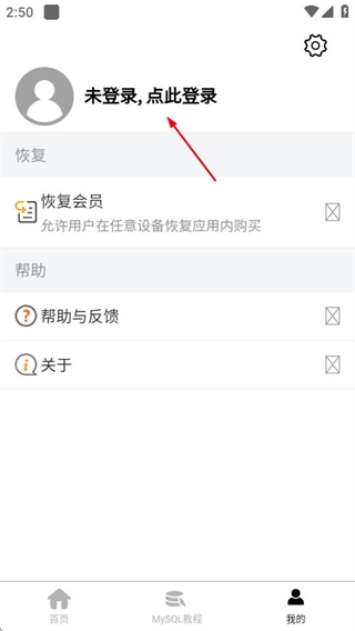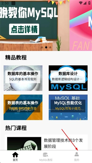 在MySQL数据库宝典首页,点击底部的“我的”选项,即可进入个人页面。