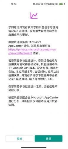 2、本应用支持开发者收集您的设备信息,该信息将用于更新统计类相关数据,您点击“接受”按钮即表示同意此操作。