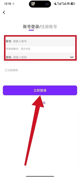 在登录页面输入符合要求的账号和密码,点击“立即登录”按钮即可完成账号登录操作。