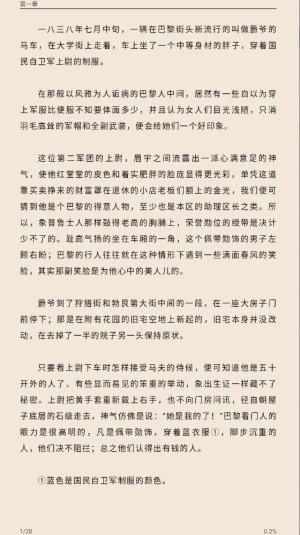 点击书籍封面后,系统会自动跳转到阅读界面,该界面支持多种字体和背景设置。
