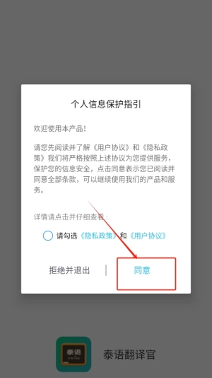 点击同意按钮即可顺利进入应用,开启丰富多彩的学习与翻译之旅,畅享便捷流畅的操作体验。