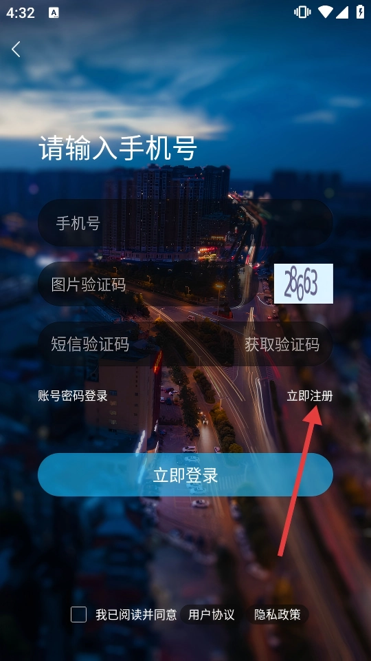 在登录注册界面,点击【立即注册】按钮。