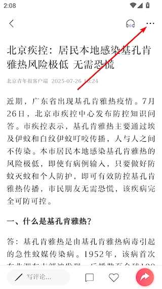 在文章阅读界面,点击右上角的三点按钮