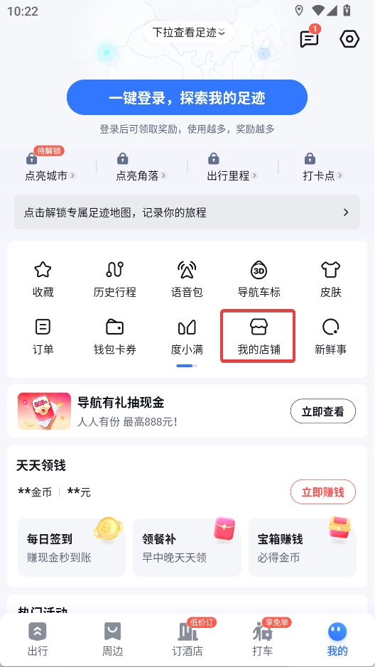 周边搜索功能:一键查找餐饮、住宿、加油站,还能查看评分和领取优惠券