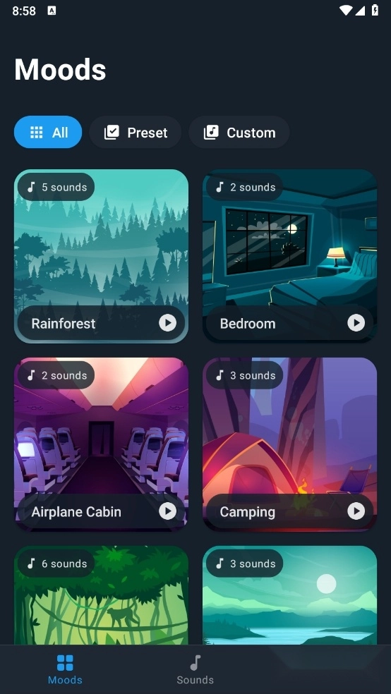 选择你需要的白噪音环境,有城市、动物、自然、雨天