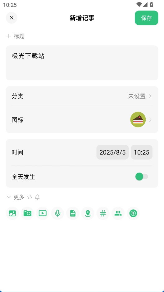 多元记录功能:可添加文字、图片、视频、语音等内容,系统会自动依据时间轴对这些内容进行归类整理。