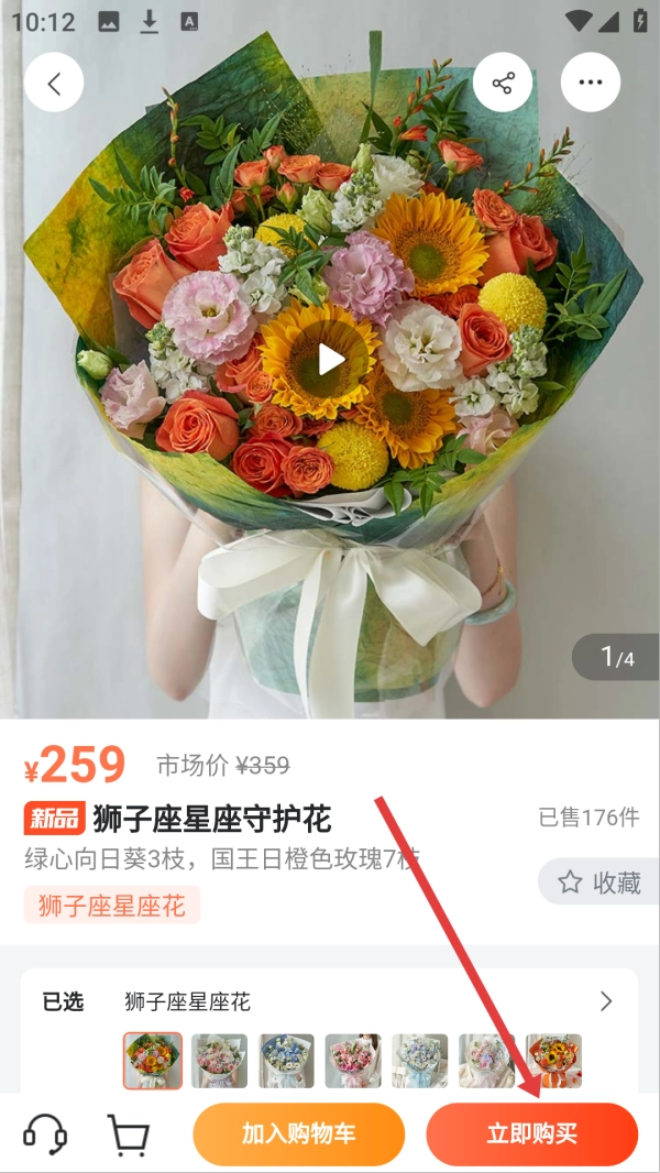 在爱情鲜花列表页面点击【狮子座星座守护花】选项,即可进入对应的商品详情页面。
