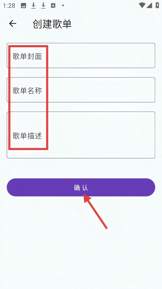在填写好【歌单封面】【歌单名称】【歌单描述】这三项内容后,点击【确认】按钮就能完成歌单的创建。