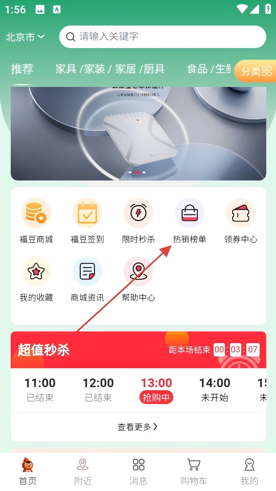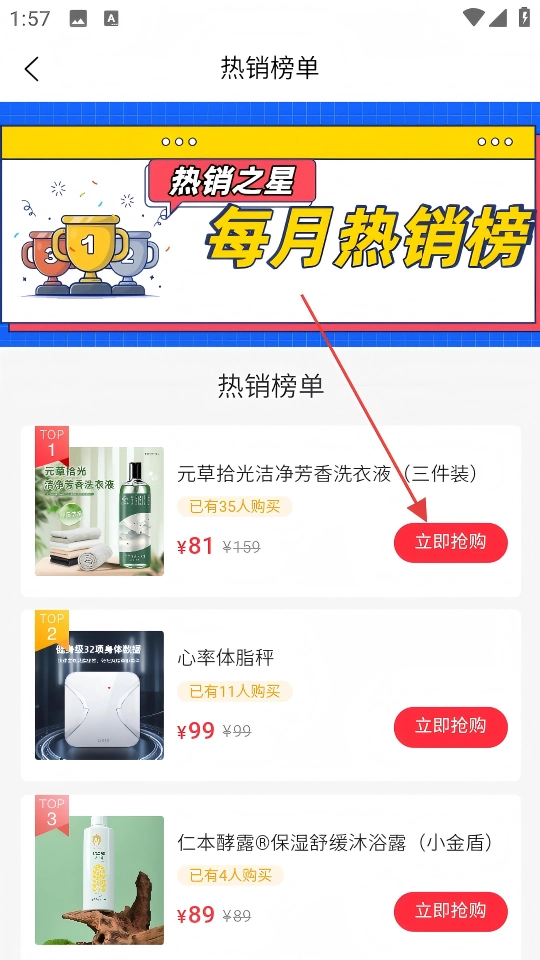 进入购物首页后,点击【热销榜单】选项,即可进入热销榜单页面。