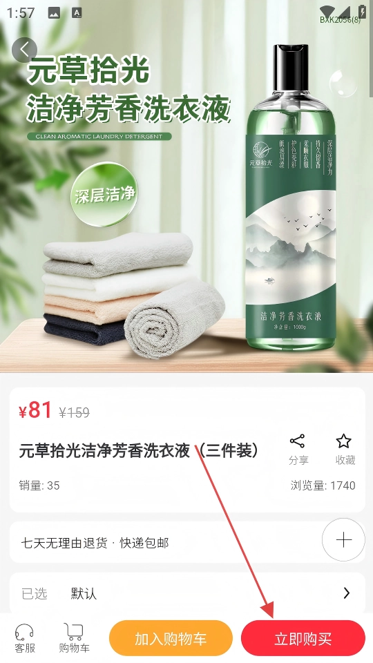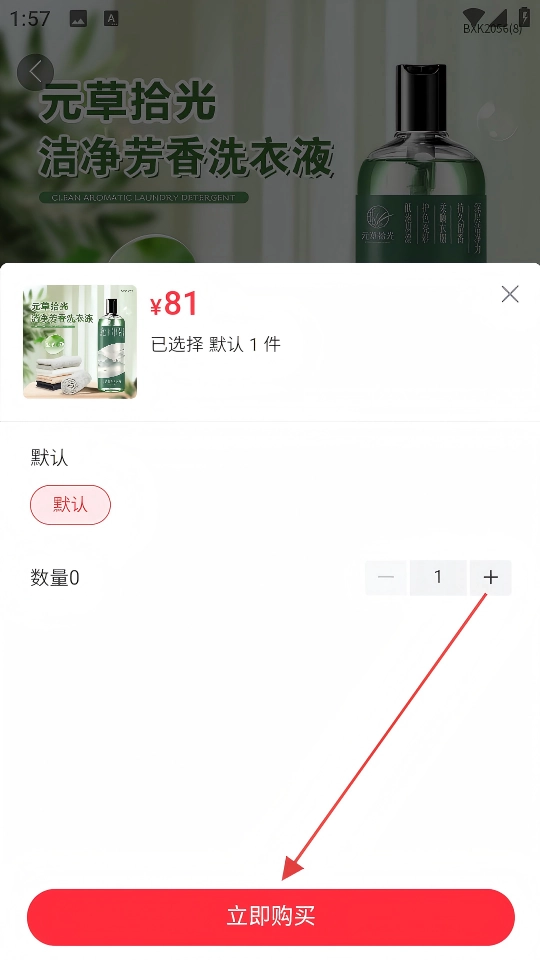 在商品详情页,点击【立即购买】按钮,即可进入规格选择页面。