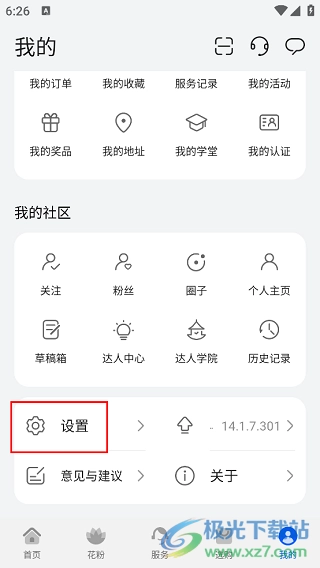 打开手机里的花粉俱乐部,首页上能看到华为旗下产品的推荐,之后点击右下角的“我的”板块。