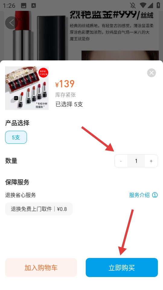 调整好商品的购买数量后,点击界面上的【立即购买】按钮,即可完成该商品的购买流程。