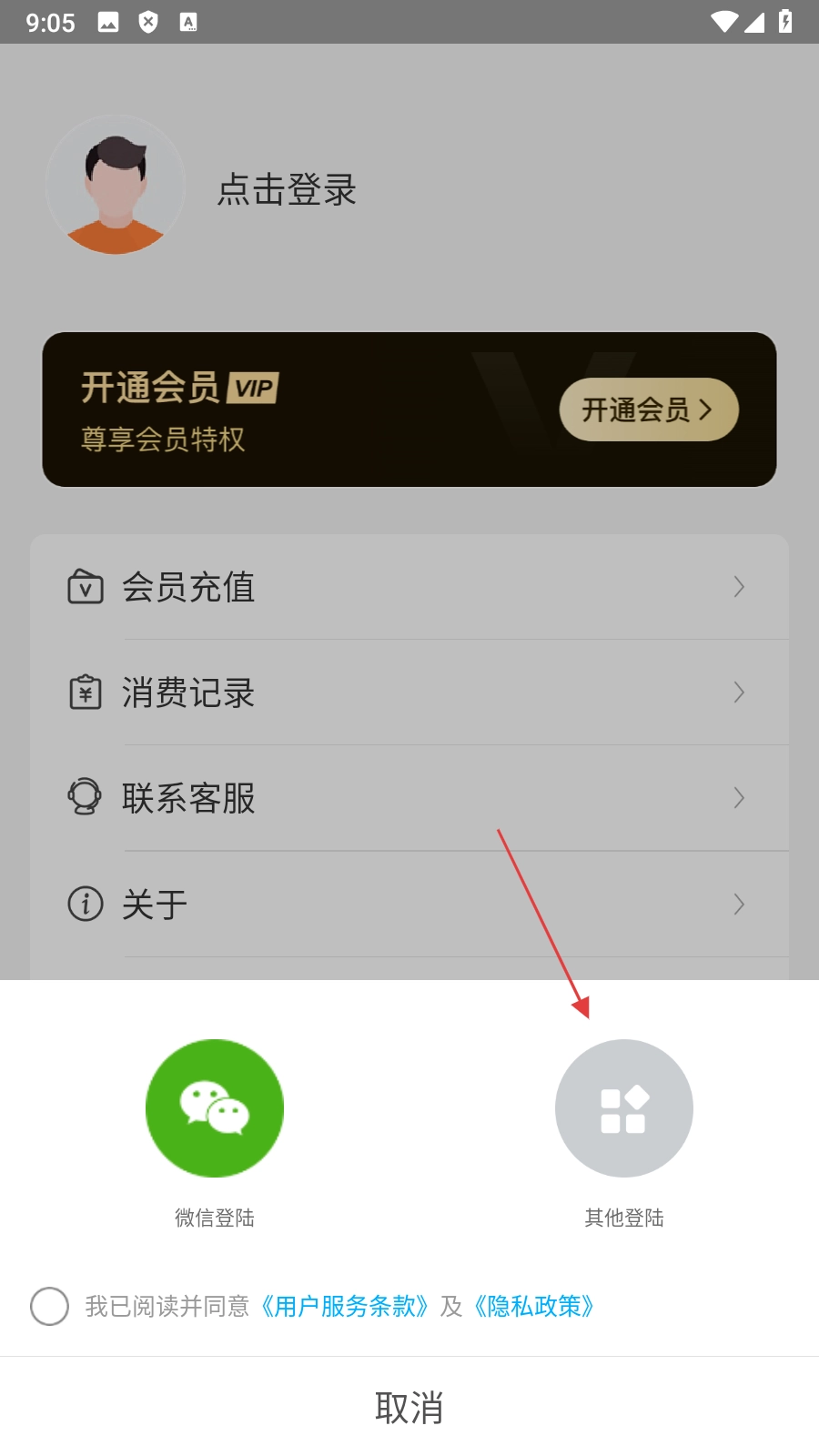 在个人中心页面,点击【点击登录】按钮,会弹出供用户选择登录方式的弹窗。