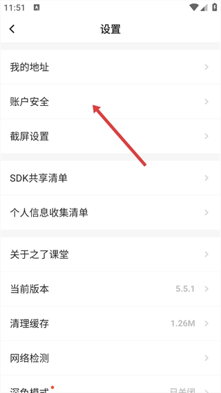 在设置页面,选择“账户安全”选项。