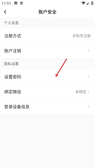 进入账户安全页面,点击“设置密码”选项。