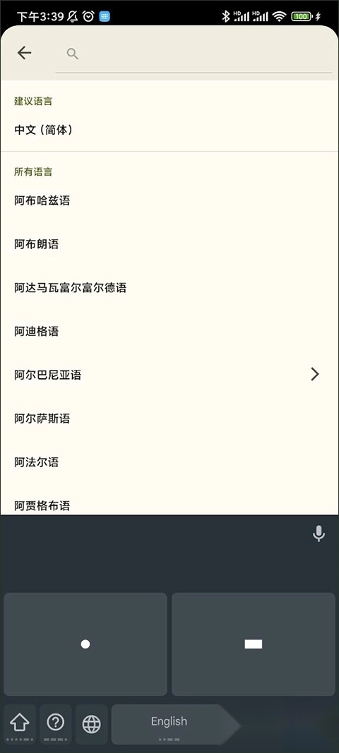1、首先打开谷歌键盘gboard应用,点击顶部的语言选项
