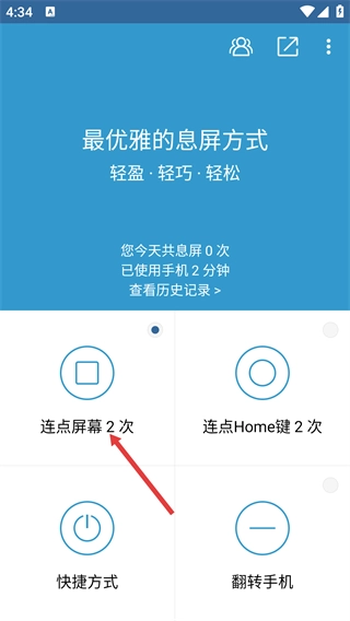 在主界面选择“连点屏幕2次”的息屏方式,就能进入该功能的详细设置页面。