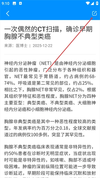 在文章详情页,点击右上角的【分享】图标。