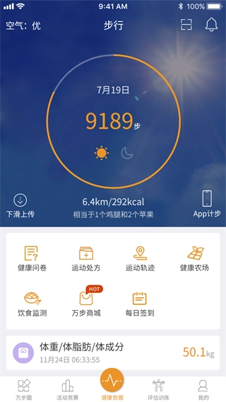 万步健康怎么记录体重数据