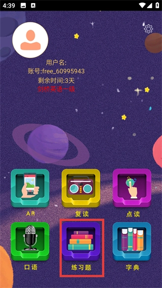 在软件的主界面里,找到并点击【练习题】这个功能入口,就能进入涵盖不同教材练习内容的练习题页面。