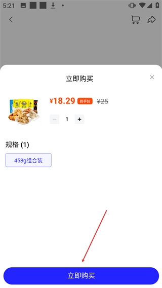 在商品详情页面,点击【立即购买】按钮后,会弹出“立即购买”的操作弹窗。