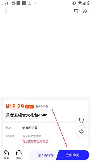 在交子立方首页的“爆品直降”板块中,点击【黄老五组合大礼包458g】即可进入该商品的详情页。