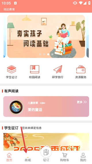 首先打开阅达教育应用,随后点击页面底部的【商城】选项,即可进入阅达教育旗舰店页面。
