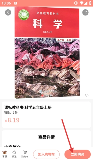 在教材详情页面,点击【立即购买】按钮即可完成教材的购买流程。