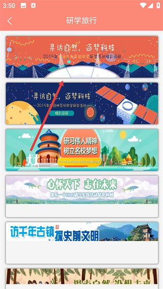 在研学旅行活动列表中,选择目标活动。