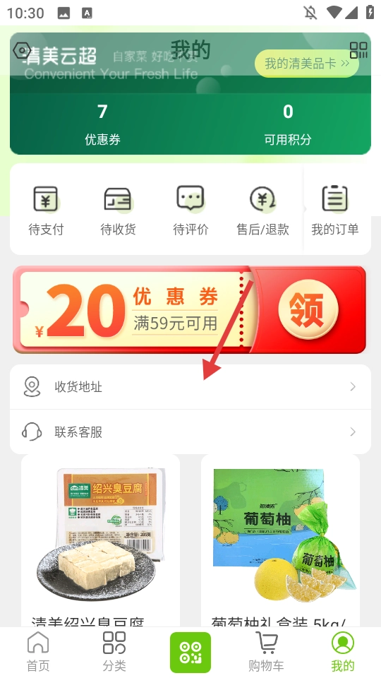 在个人页面点击【收货地址】。