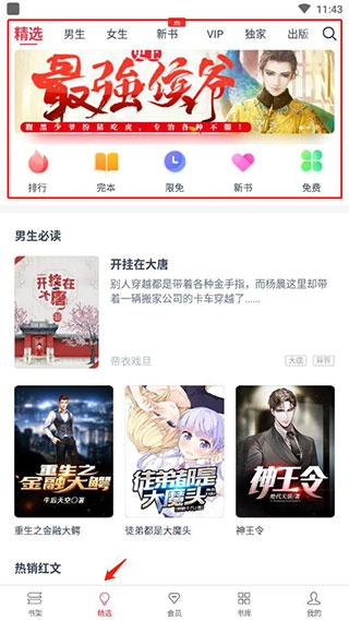 2、进入后,精选板块为大家准备了各类小说推荐,这里堪称书荒党的福音之地。