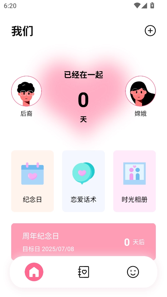 之后每次打开软件,首页都会显示在一起的天数;在纪念日栏填写具体天数后,刚恋爱时可以查看恋爱话术,还能偶尔点开时光相册拍些照片。